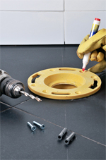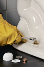 - Coloque las arandelas de retención sobre los pernos, apriete las tuercas hasta que estén aseguradas, pero cuidando siempre de no presionar demasiado (porque se puede romper el sanitario).